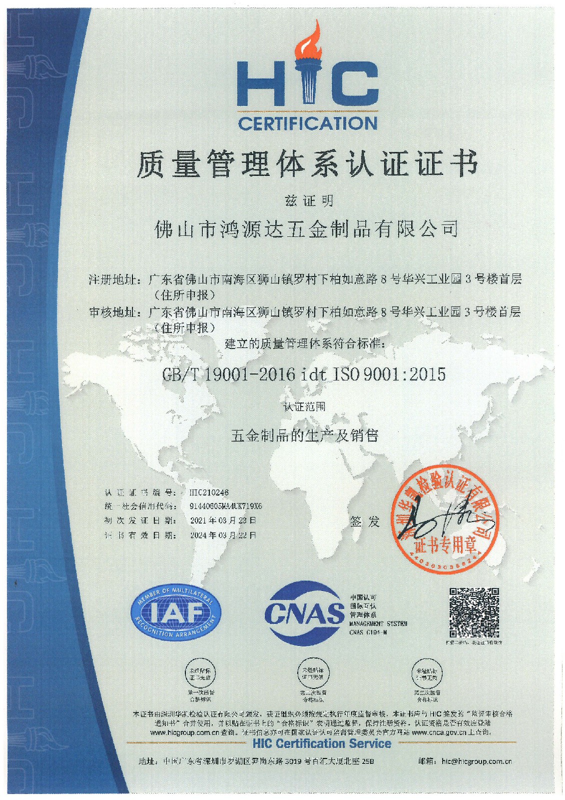 公司一直以誠信、實力、質量的高要求獲得業界的認可,鴻源達一直以“客戶至上、信譽第一、精益求精、優質服務”為經營理念持續長期發展,正是因為高標準,高要求,鴻源達五金制品廠受到了廣大客戶的一致認可與好評。